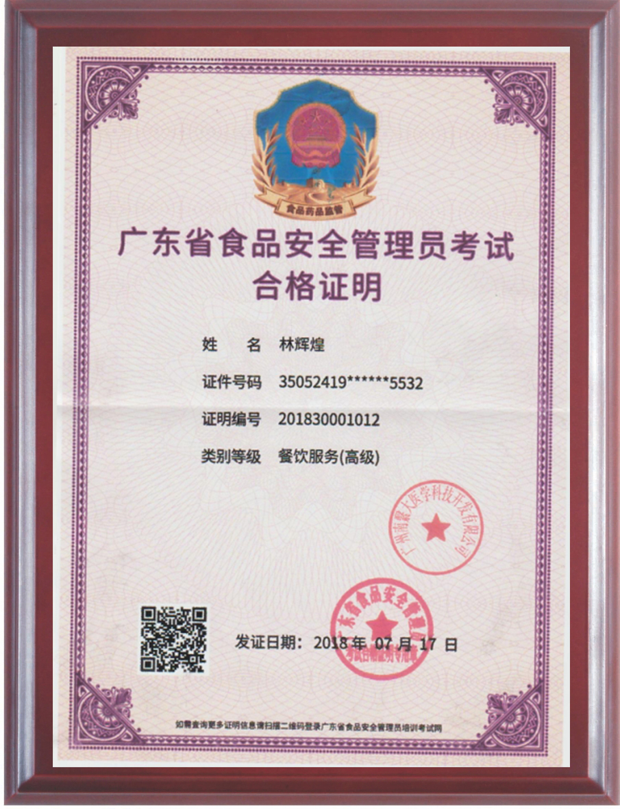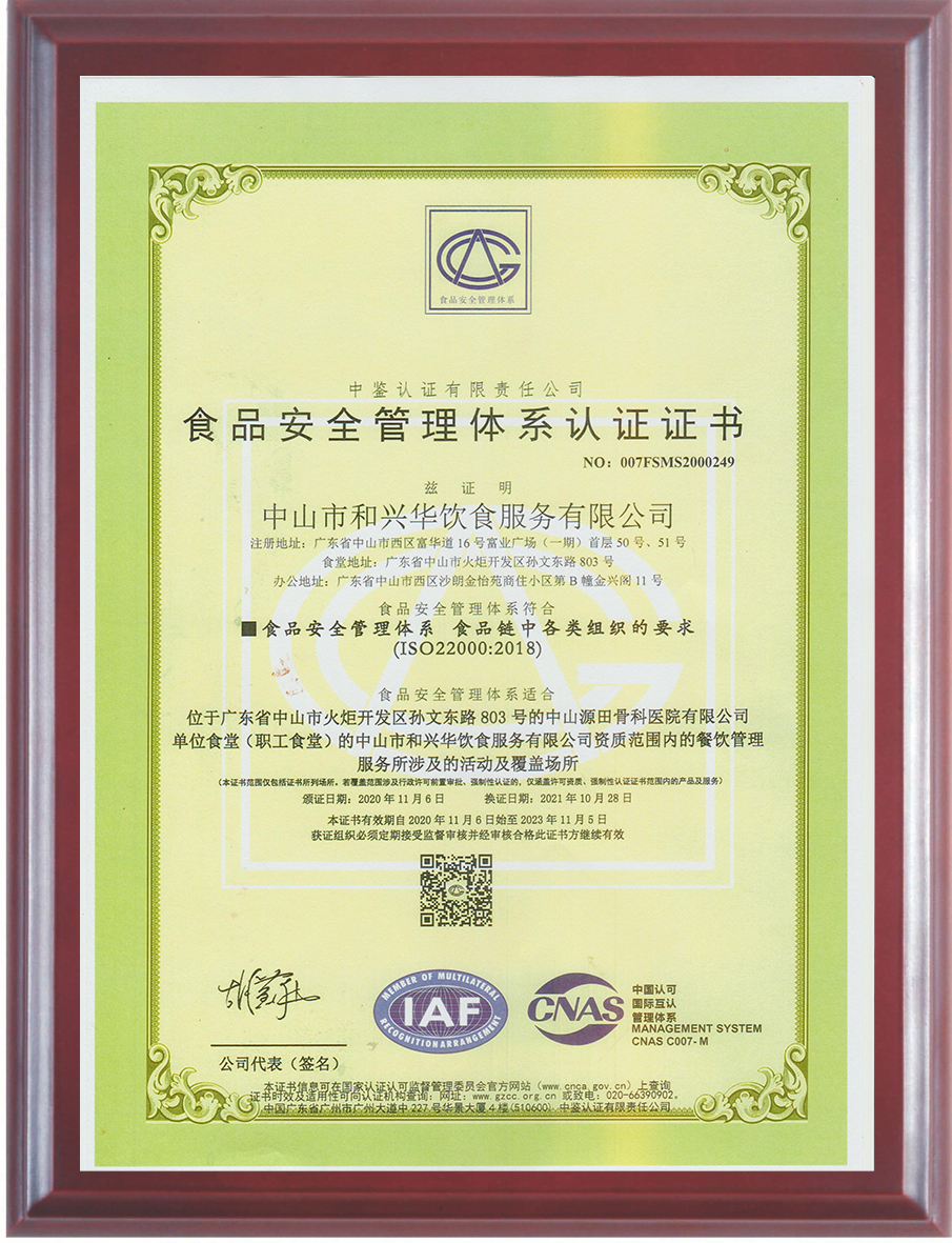 食品安全管理認(rèn)證證書(shū)