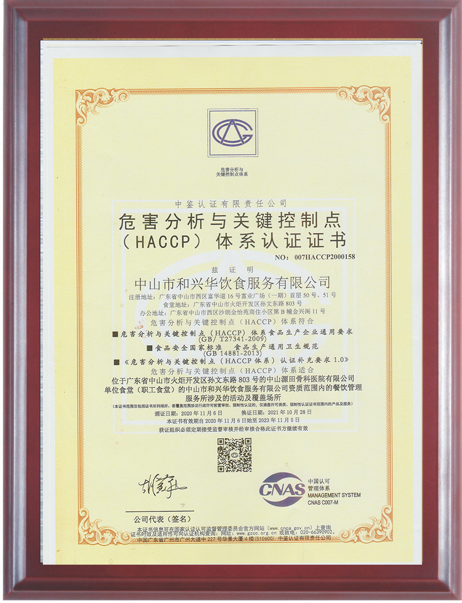 HACCP體系認(rèn)證證書(shū)