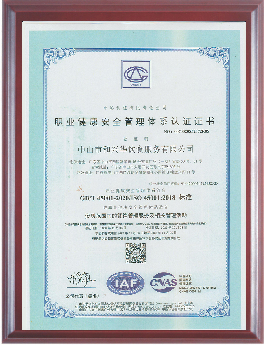 職業(yè)健康安全管理體系證書(shū)
