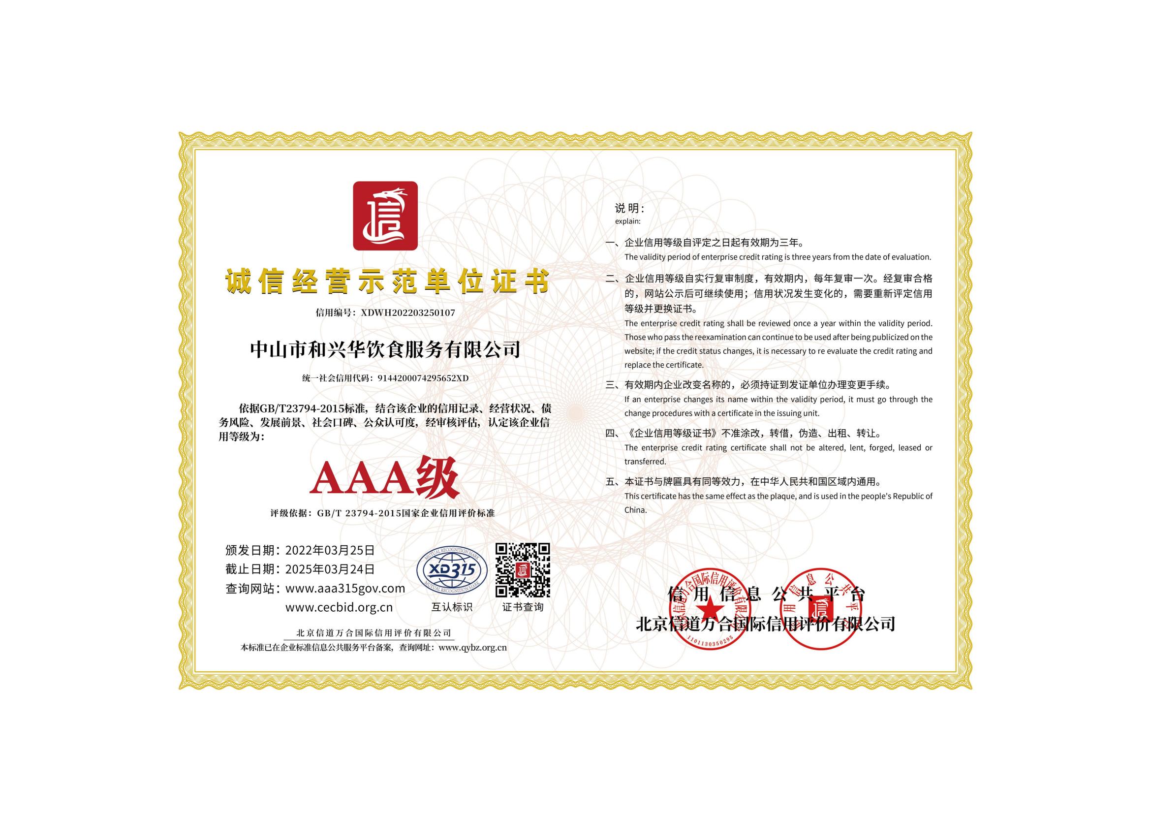 誠(chéng)信經(jīng)營(yíng)示范單位3A