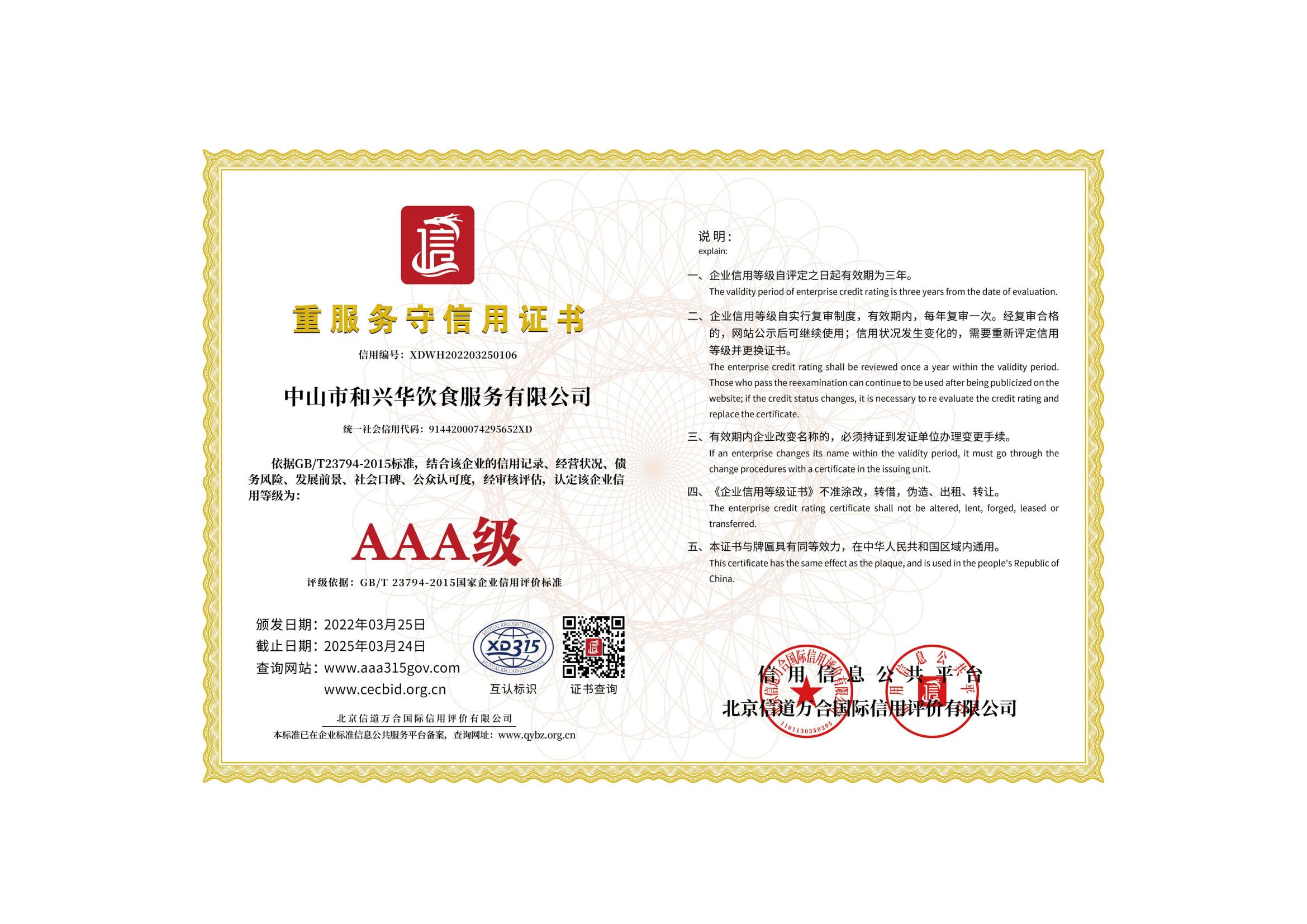 重服務(wù)守信用證書(shū)3A