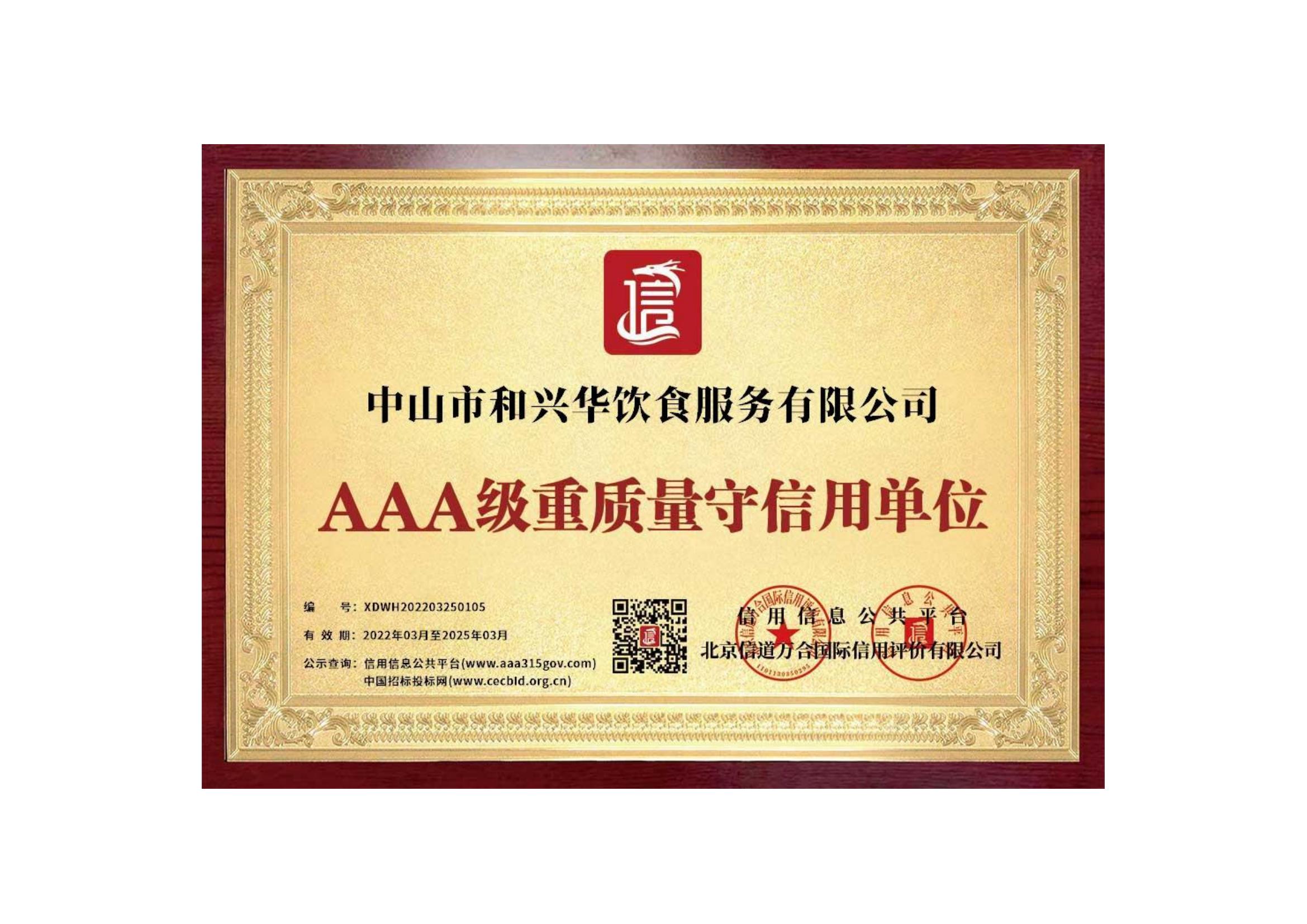 重質(zhì)量守信用證書(shū)3A